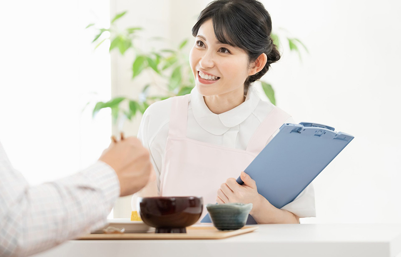 出勤後、まずは連絡ノートに目を通し、夜勤の看護師から患者様の状態についての申し送り事項を確認します。その後、朝食の配膳と食事の介助が必要な方のサポート、そしておむつ交換やトイレへの誘導など、患者様一人ひとりの状態に合わせた排泄の援助を行います。