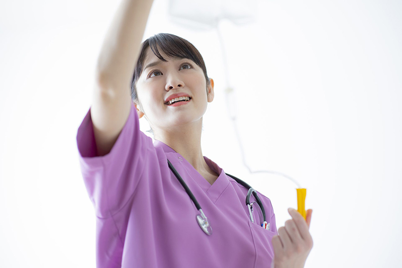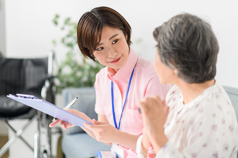 担当する患者様の検温、血圧、脈拍、血中酸素飽和度などのバイタルサインを測定し、健康状態を把握します。測定した数値や観察した内容は、正確にカルテに記録します。患者様とのコミュニケーションも、健康状態を把握するための大切な時間です。